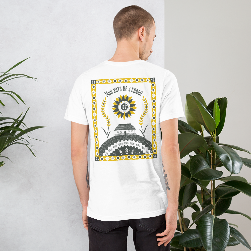 We inverted the Ukrainian proverb, “моя хата cкраю” / “my house is on the edge”, traditionally said in apathy to issues that are not of immediate concern. Kryla’s first collection encourages wearers to continue paying attention to the humanitarian crisis in Ukraine – because our house is not on the edge. This ongoing war does not only affect Ukraine, but democracy and freedom everywhere. All proceeds from sales go towards our projects (read more on our projects page) and organizations that are currently on the ground in Ukraine.